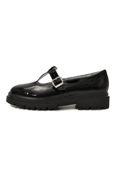 Черные лоферы с фактурным швом, подчеркивающим форму мыса, выполнили из гладкой мягкой кожи. Союзку украсили перемычкой с белым вышитым логотипом бренда. Пару установили на массивную подошву с глубоким протектором, отвечающую за комфорт каждого шага.