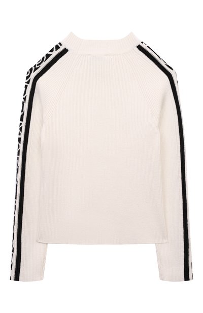Пуловер выполнили из ребристого хлопкового трикотажа с добавлением кашемира. Модель дополнит и повседневный, и н естрогий школьный образ.