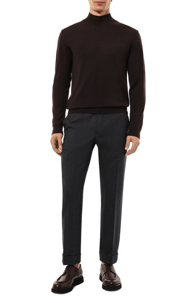 Для изготовления дерби с брогированием выбрали фактурную кожу с глянцевым блеском и элегантной патиной. Пару с открытым типом шнуровки и миндалевидным мысом поставили на многослойную подошву с глубоким противоскользящим протектором.
