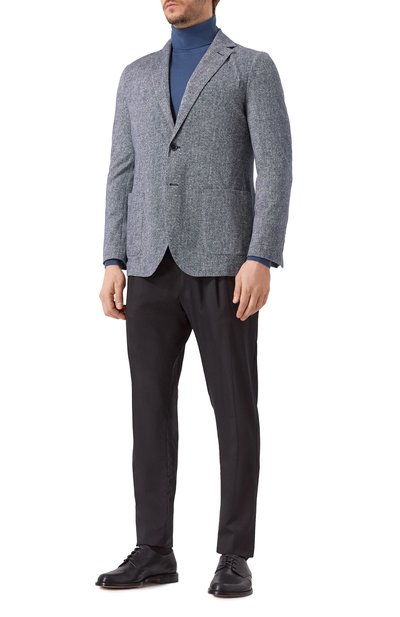 Брогирование на дерби из крупнозернистой матовой кожи акцентирует блестящие гладкие накладки сбоку и на миндалевидном мысе. Связующим звеном между разными по фактуре материалами стал черный цвет, который делает пару универсальной. Модель утеплили стриженой овчиной и дополнили небольшим протектором, поэтому она подойдет для межсезонья.