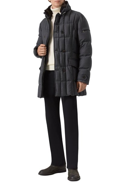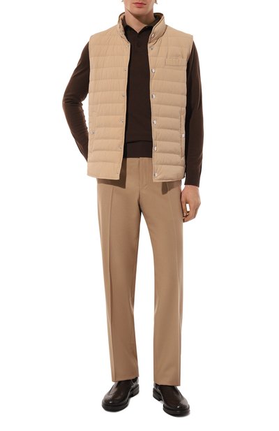 Темно-коричневые челси с перфорированным узором изготовили из мягкой прочной кожи с мелким зернением. Пару с миндалевидным мысом мастера марки, основанной семьей Пантанетти, многократно окрашивали и полировали, чтобы сформировать полутона и патину. Чуть выступающую подошву дополнили рифленым протектором, поэтому обувь меньше скользит на мокрой дороге.