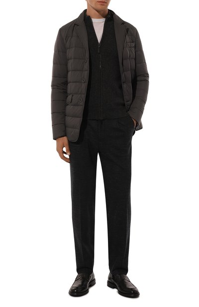 Темно-серые ботинки без шнуровки, на сплошной подошве помогут завершить повседневный образ любой степени сложности. Для изготовления модели с рельефным швом, подчеркивающим миндалевидную форму мыса, использовали фактурную замшу.