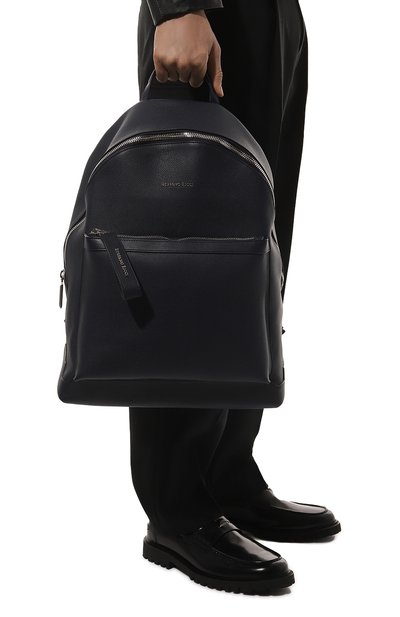 Рюкзак из зернистой кожи украсили брендированной нашивкой, окрашенной в фирменной кустарной технике velatura. Модель с короткой ручкой дополнили шлевкой для крепления на телескопическую ручку чемодана, внешними и внутренними карманами.