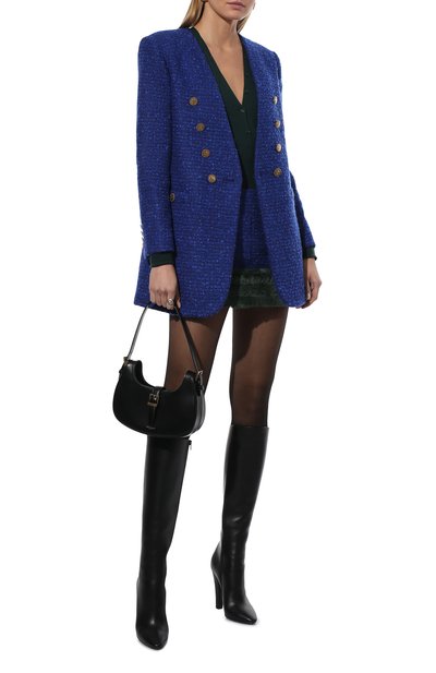 Двубортный жакет насыщенного синего цвета сделает силуэт более статным благодаря искусному тейлорингу и материалу. Для пошива модели мастера марки, основанной Александром Маккуином, использовали тонкую шелковистую шерсть. Каждую деталь тщательно отпарили перед сборкой, поэтому пиджак с широкими фигурными лацканами идеально держит четкость линий. Изделие с акцентированной линией плеч может стать частью образа для особого случая.