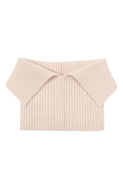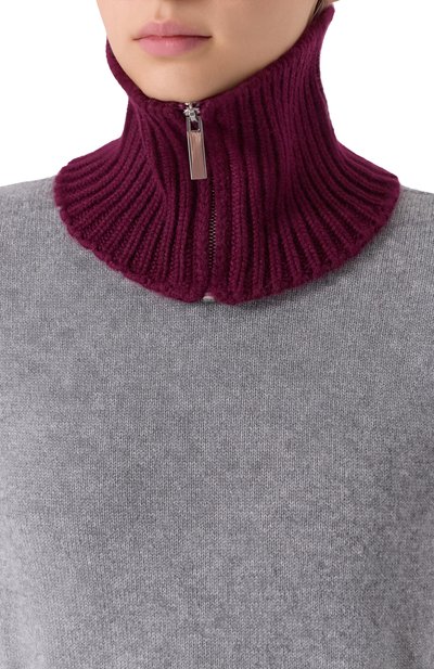 Вязаный аксессуар, напоминающий объемный ворот свитера, выполнили из кашемира, обеспечивающего оптимальный микроклимат. Лаконичное изделие с разрезом будет органично смотреться и с классическим пальто, и с пуховиком.