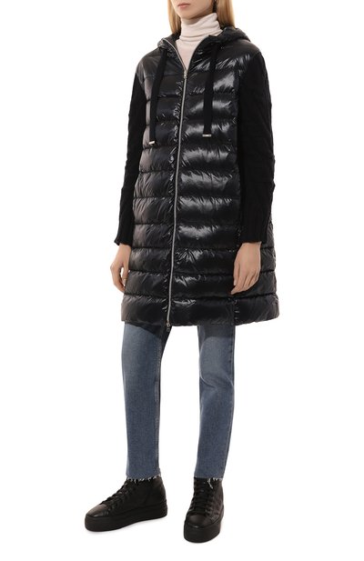 Стеганую куртку на гусином пуху сшили из сверхлегкого влагостойкого нейлона. Модель с двумя нагрудными и парой боковых карманов застегивается брендированными кнопками.