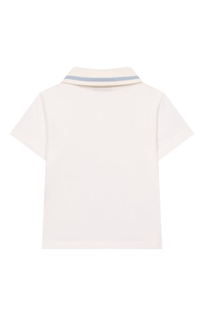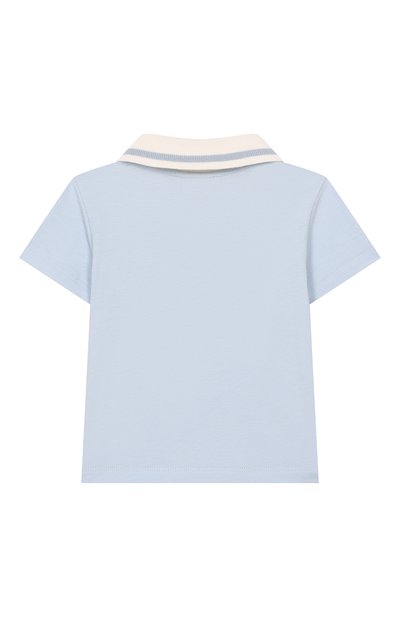 Для пошива футболки использовали мягкое джерси из отборного хлопка, которое хорошо пропускает воздух и безопасно даже для очень чувствительной кожи. Круглый вырез изделия с принтом в стиле майолики дополнили однотонной отделкой. Чтобы вещь было удобнее надевать и снимать, на плече предусмотрели потайные кнопки.