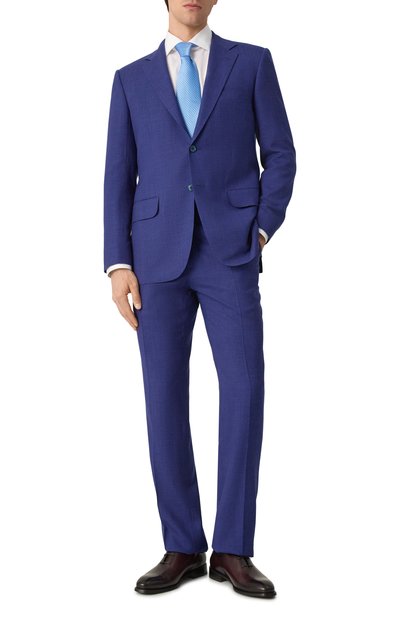 Сорочку кроя slim fit с воротником «акула» сшили из итальянского хлопкового поплина. Рукав дополнили закругленной манжетой. Одну пуговицу разместили на ней, другую — на планке, закрывающей разрез.