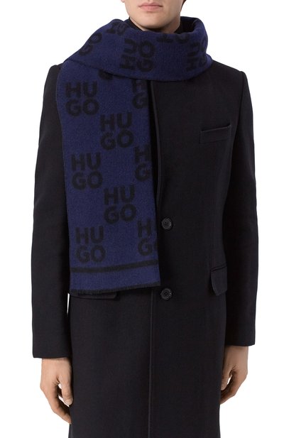 Однотонный шарф с бахромой по краям выполнен из шерстяного трикотажа. Широкий эластичный аксессуар украшен контрастным патчем с логотипом марки фирменного алого оттенка. Длины изделия хватит, чтобы несколько раз обернуть его вокруг шеи.
