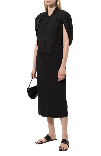 Миди-юбка сшита из струящегося атласа на основе переработанного полиэстера. Модель с миниатюрной брендированной подвеской застегивается потайной молнией сбоку.