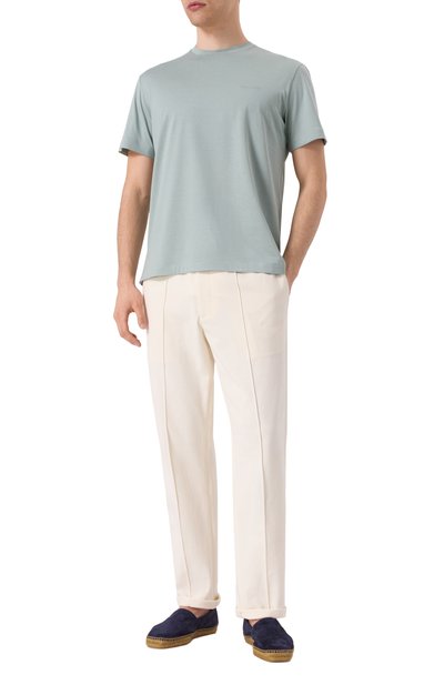 Для пошива модели использовали гладкий трикотаж из тутового шелка с добавлением хлопка. Однотонная футболка с круглым вырезом гармонично впишется в любой повседневный образ.