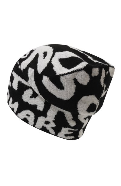 Шапку бини, поддерживающую оптимальный микроклимат, связали из шерстяной пряжи. Принадлежность марке аксессуара обозначили жаккардовым контрастным логотипом на широком отвороте.
