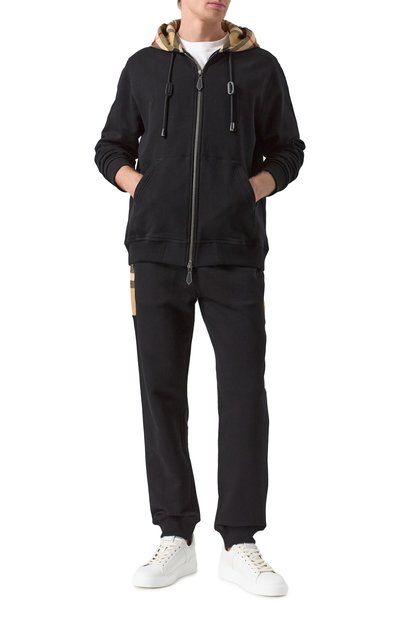 Толстовку с брендированным паттерном Equestrian Knight выполнили из эластичного хлопкового футера. Модель на встречной молнии дополнили прорезными карманами.