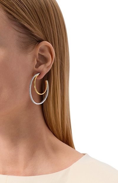 Фигурные серьги выполнили из эмали с использованием гальванического покрытия золотом. Верхнюю часть изделия украсили россыпью культивированных жемчужин разного размера.