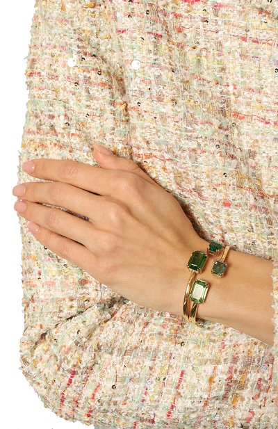 Широкий браслет изготовили из комбинации матового полиэстера и латуни с зеркальным блеском. На массивное украшение лазером нанесли логотип марки, словно написанный от руки.