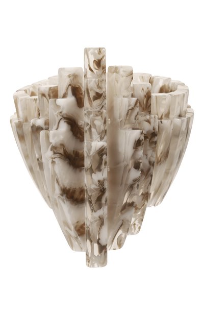 Широкий асимметричный браслет привлекает внимание фигурными перламутровыми деталями из акрила с монохромным абстрактным мотивом. Их собрали на узкие резинки, поэтому аксессуар плотно облегает запястье, подстраиваясь под его размер.