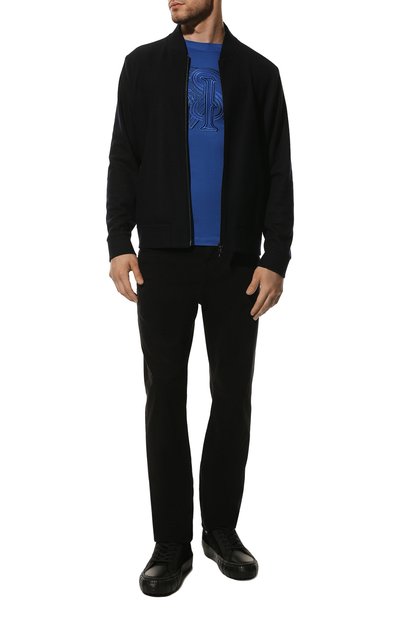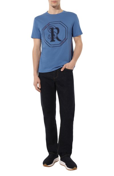 Футболку кроя Regular fit выполнили из хлопкового джерси. Круглая горловина, рукава и низ отделаны контрастными узкими вставками, создающими иллюзию многослойности.
