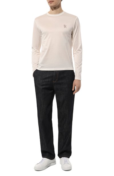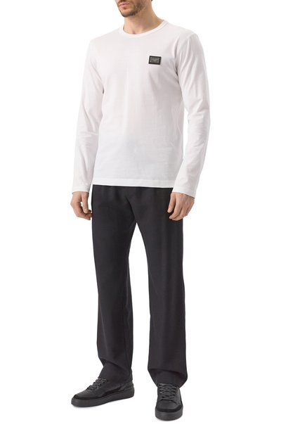Минималистичный лонгслив прямого кроя удачно пополнит базовый гардероб — изделие подружится и с формальными брюками, и с карго, и с джинсами. Для изготовления модели использовали хлопков ое джерси.