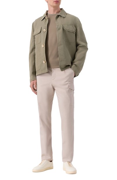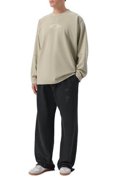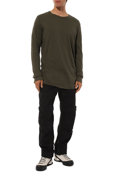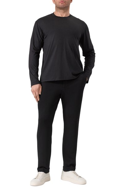Лаконичный прямой лонгслив с рельефными швами выполнен из гладкого хлопкового джерси. Круглая горловина отделана изнутри контрастным меланжевым кантом, создающим иллюзию многослойности.