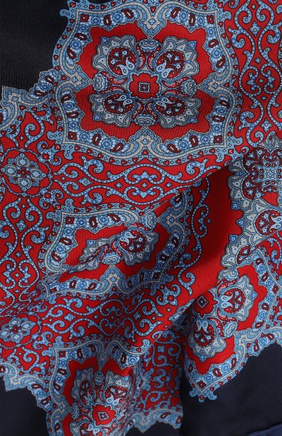 Двусторонний платок из чистого шелка декорировали небольшой эмблемой Solomeo в одном из углов. С декором перекликается контрастный узор вдоль подшитых вручную краев аксессуара.