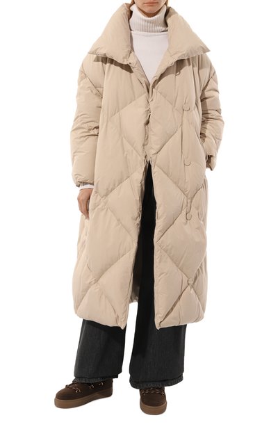 Для пошива пуховика Carinzia-OS оттенка Stone использовали непродуваемую ткань с мягкой бархатистой фактурой. Гусиный пух сохраняет тепло при температуре от -5 до +12 градусов. Изделие с гипертрофированно высоким воротником, переходящим в регулируемый капюшон, и двумя карманами застегивается встречной молнией. По бокам — вставки, скрытые под молниями.