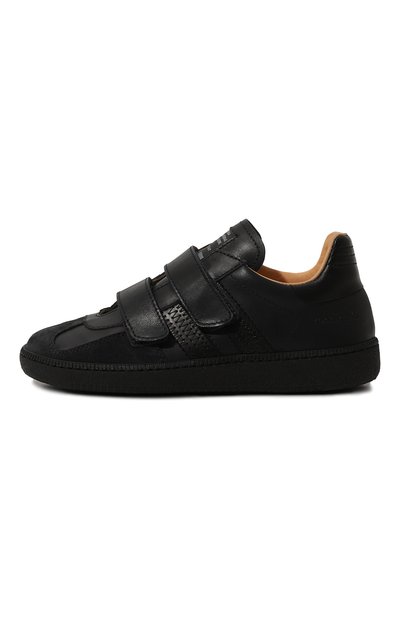 Темно-синие высокие кеды из мягкой зернистой кожи с отделкой из густой овчины выполнены с учетом особенностей строения растущей детской стопы. Посадка обуви с гибкой нескользящей подошвой регулируется широкими текстильными ремешками с застежками велкро.