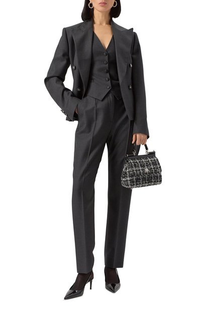 Для пошива жилета использовали материал на основе шерсти с добавлением кашемира и стрейчевых нитей. Изделие с изогнутой линией борта застегивается едва заметными пуговицами в тон. Предлагаем составить лаконичный образ с костюмными брюками и пенни-лоферами.