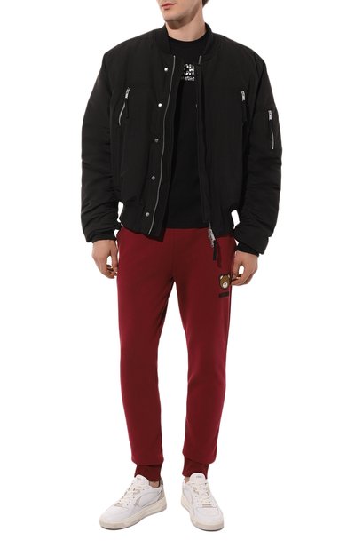 Футболку с круглой горловиной выполнили из хлопкового джерси. Изделие прямого кроя украсили многослойным мотивом с изображением фирменного плюшевого медведя Teddy Bear и логотипа бренда. Модель составит повседневный образ и с брюками или с шортами.