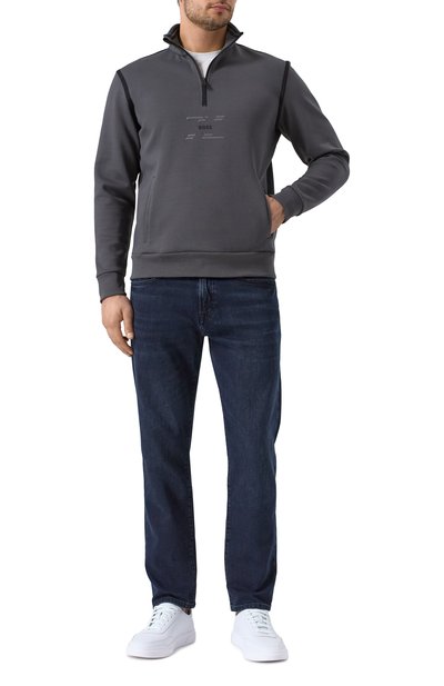 Свитшот Neeler со спущенной линией плеч и высокой горловиной в рубчик застегивается короткой молнией. Модель из хлопкового френч терри украсили небольшим брендированным патчем, характерным для линии Hugo Blue.