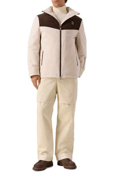 Комбинезон силуэта oversize станет основой образа в стиле streetwear. Для пошива модели с рукавами реглан, регулируемым капюшоном, тремя карманами и резинками на талии и манжетах использовали гладкий нейлон. Изделие застегивается длинной молнией, скрытой под клапаном с лентами велкро. Слева на груди и на спинке – контрастные логотипы бренда.