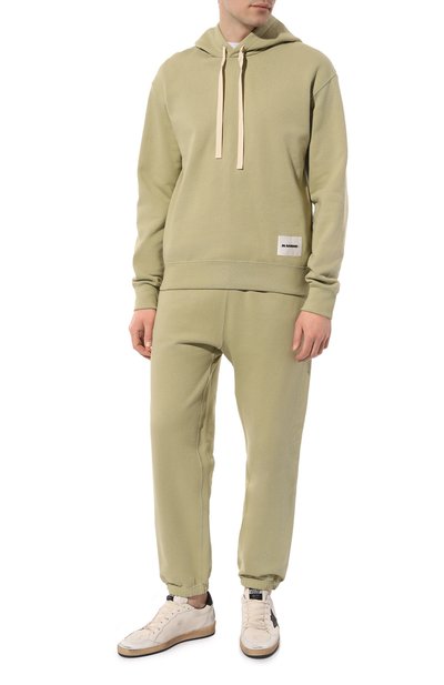 Хлопковое худи с карманом «кенгуру» украсили контурным вышитым логотипом, который поддержали изображением перекрещенных стрелок сзади. Наши стилисты предлагают носить модель силуэта oversize с потертыми джинсами, завершив образ кедами.