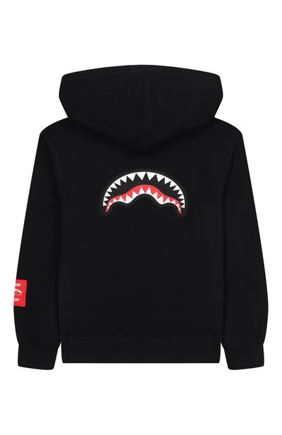 Для пошива худи использовали хлопковый трикотаж с флисовой изнанкой, хорошо удерживающей тепло. Спереди и сзади модель с манжетами и низом в рубчик украсили логотипом марки с фирменным эмодзи.