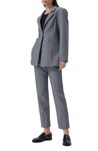 Брюки со стрелками и завышенной посадкой станут основой образа для офиса с нестрогим дресс-кодом. Модель с двумя боковыми карманами и широким поясом с эластичной вставкой сзади сшили из шерстяного твила, усиленного полиэстером.