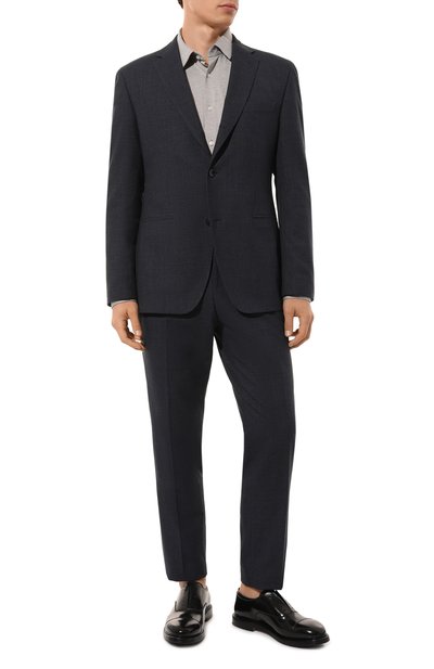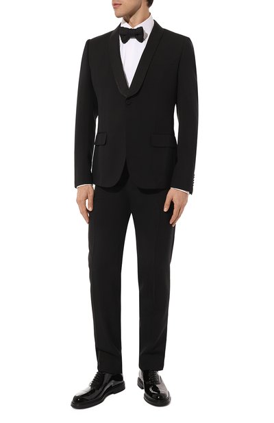 Черные кожаные оксфорды сделали менее формальными, украсив их перфорацией по всей поверхности. Края однотонных вставок декорировали миниатюрными фестонами. Легкая подошва из комбинации кожи и полимера обеспечивает комфортную ходьбу.
