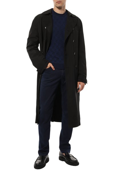 Свитер с высоким воротом, как у водолазки, дополнили застежкой на левом плече, поэтому его удобно надевать и снимать. Модель из шерстяной пряжи с добавлением кашемира украсили замшевым патчем с тисненым логотипом сзади.