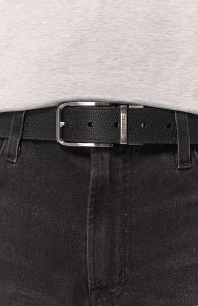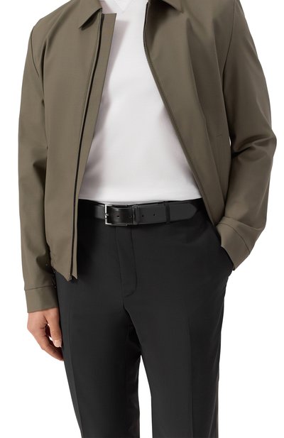 Ремень B-1dr выполнили из телячьей кожи. Регулируемый прямоугольной пряжкой аксессуар дополнили шлевк ой, украшенной металлической эмблемой Oval D.