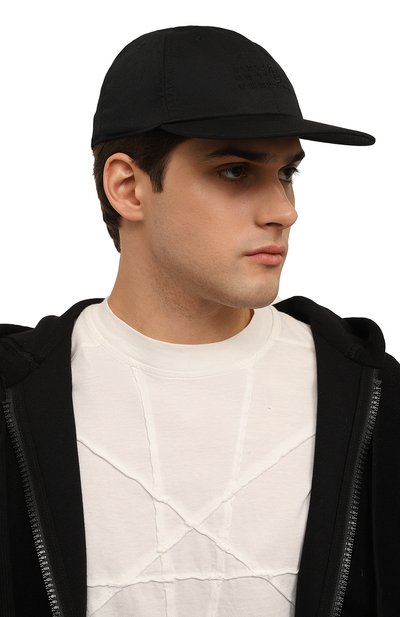 Бейсболку с изогнутым козырьком и регулируемым ремешком выполнили из хлопкового габардина, который слегка выбелили. Спереди аксессуар украсили фирменным числовым мотивом, вышитым в тон.