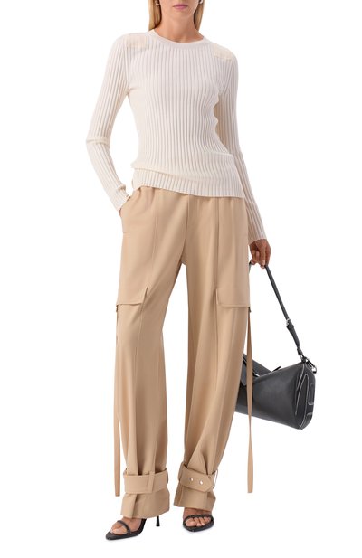 Хлопковые карго станут основой неформального образа, например, с боди и кедами. Кроме пары боковых и задних карманов у брюк есть несколько вместительных накладных спереди, четыре из которых застегиваются молниями.