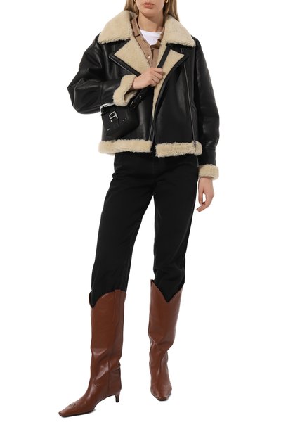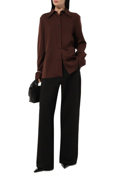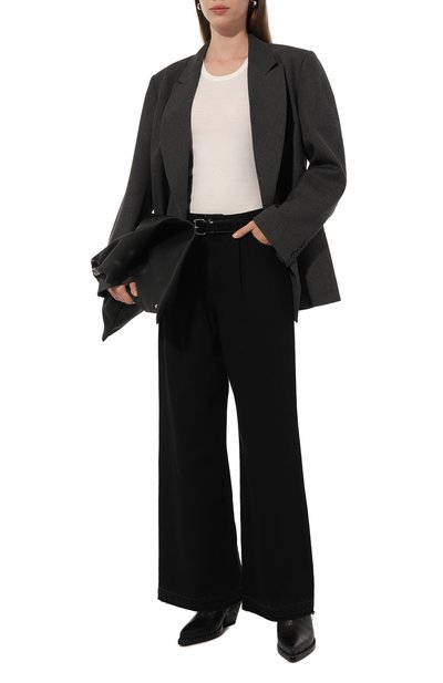 Утрированно широкие джинсы с высокой посадкой станут основой разных повседневных образов, например, с боди и туфлями. Брюки из чистого хлопка украсили сзади фирменным контрастным швом и брендированным патчем на поясе.
