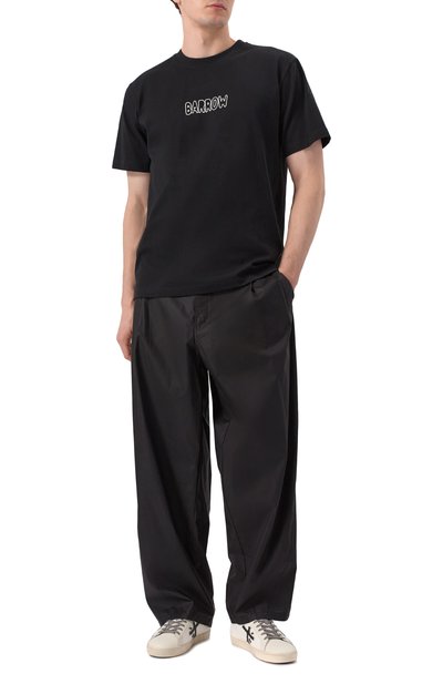 Свободные брюки, украшенные знаковым мотивом в виде чисел сбоку и фирменным стежком сзади, сшиты из плотного хлопка. Модель дополнена эластичным поясом и пятью функциональными карманами: задним накладным, боковыми врезными и карго на брючинах. Изделие застегивается пуговицей и молнией.