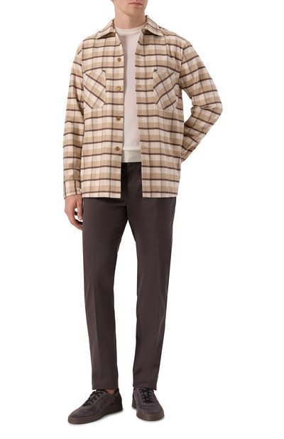 Куртка-рубашка Creta из фактурной фланели, сотканной из шерсти и кашемира, выручит в прохладную погоду межсезонья. Модель в клетку «принц Уэльский» дополнили двумя карманами, один из которых украсили фирменной заклепкой из оцинкованного драгоценного металла.