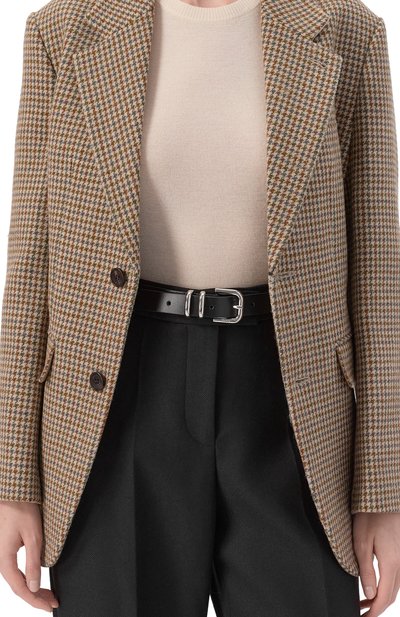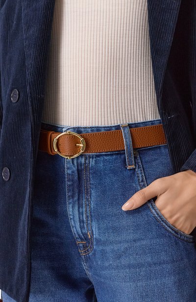 Для изготовления ремня Beth использовали крупнозернистую кожу. Аксессуар застегивается фигурной пряжкой с тренчиком, изготовленным из никелированного металла.