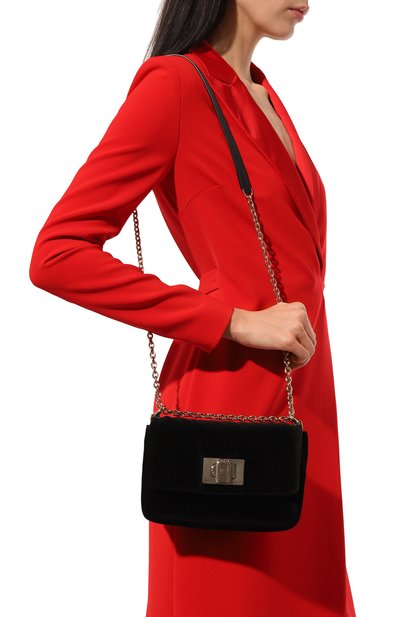| Параметры изделия Высота 12 см, ширина 22,5 см, глубина 7 см, длина ремешка 125 см. В комплект входит: плечевой ремень, цепочка длиной 47 см. |