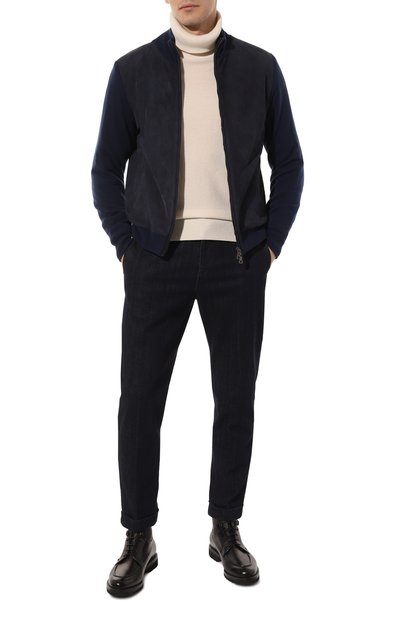 Джинсы с боковыми и задними карманами изготовили из плотного денима. Хлопок в основе ткани соединили с эластаном, поэтому зауженная модель садится комфортно. Широкий, тянущийся сзади пояс дополнили патчем с логотипом.