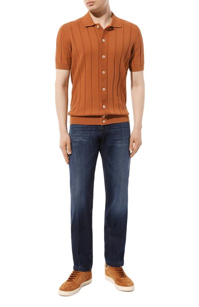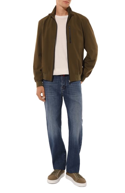 Чуть выбеленные джинсы с потертостями и заломами сделают повседневный образ более расслабленным. Зауженные брюки из японского денима средней плотности декорировали фирменным патчем на поясе сзади.