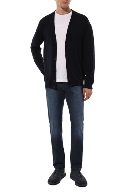 Трикотажные кроссовки на широкой подошве с рельефным узором подойдут и для утренних пробежек, и для прогулок по городу. Шнуровку и задник с короткой брендированной петлей укрепили накладками из гладкой кожи, декорированными фирменным стежком оранжевого оттенка.