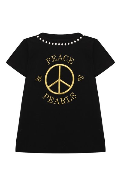Хлопковая футболка хорошо пропускает воздух и не сковывает движения, поэтому в ней будет комфортно весь день. Модель украсили брендированным принтом в виде сердца и фирменного игрушечного медведя.