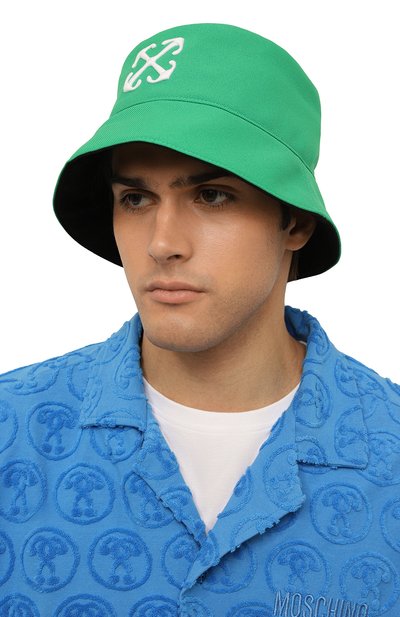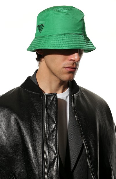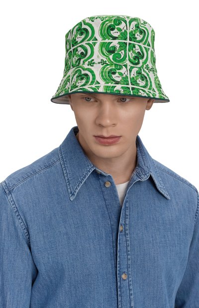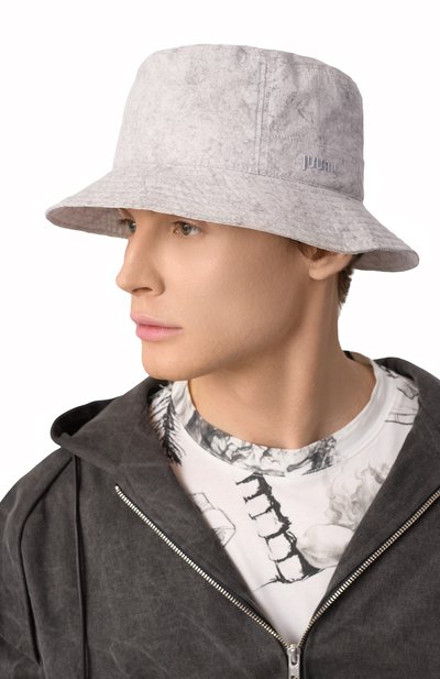 Панаму со стегаными прямыми полями средней ширины украсили рельефным контрастным логотипом марки спереди. Для изготовления аксессуара использовали прочный габардин из микса полиэстера и хлопка.