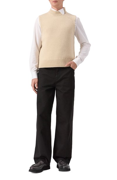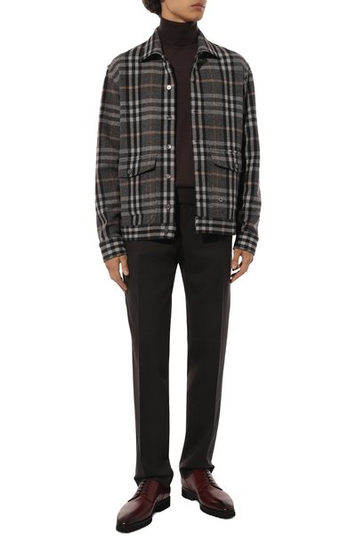 Кожаные дерби с внутренней отделкой из овчины установили на протекторную резиновую подошву. Пару с фактурным швом на мысе и брендированной стелькой украсили патиной.
