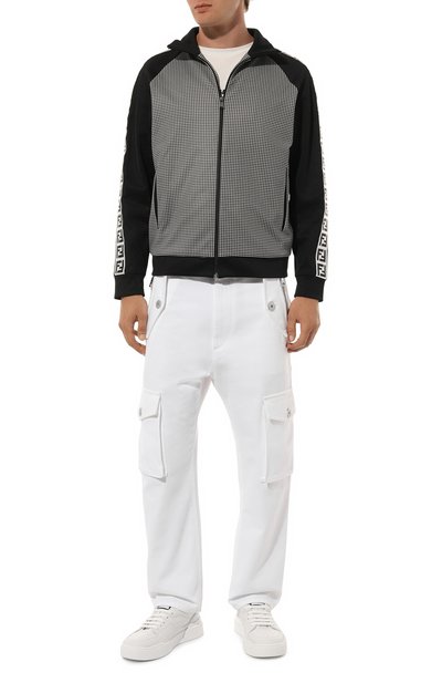 Толстовку с рукавами реглан и прорезными карманами выполнили из эластичного хлопкового трикотажа с паттерном PB Labyrinth. Модель с отделкой в контрастную полоску декорировали брендированной нашивкой спереди.